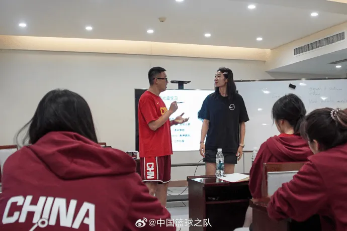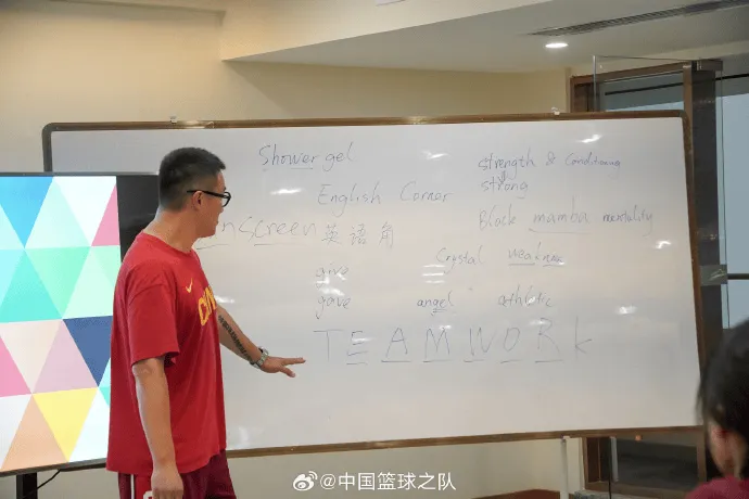 本周中国女篮训练课余,教练组特别准备一次“英语角”活动