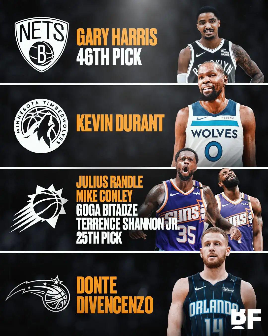 CBS模拟四方大交易:森林狼4换1引进杜兰特,兰德尔赴太阳